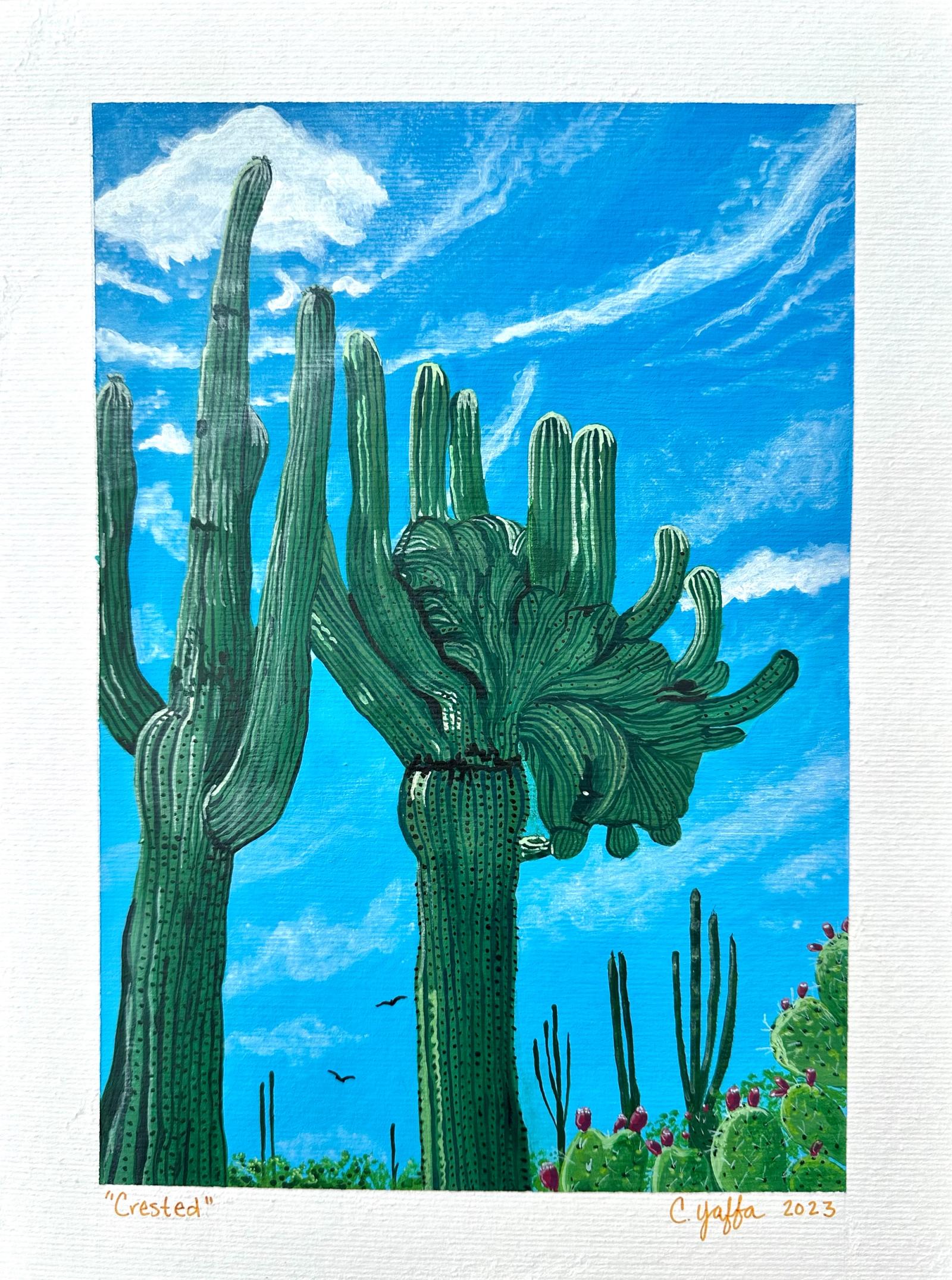 12x9" acrylic on fine art paper. Satin varnished for protection. Originals on paper are signed in the front right corner. Includes a 1 inch white border.