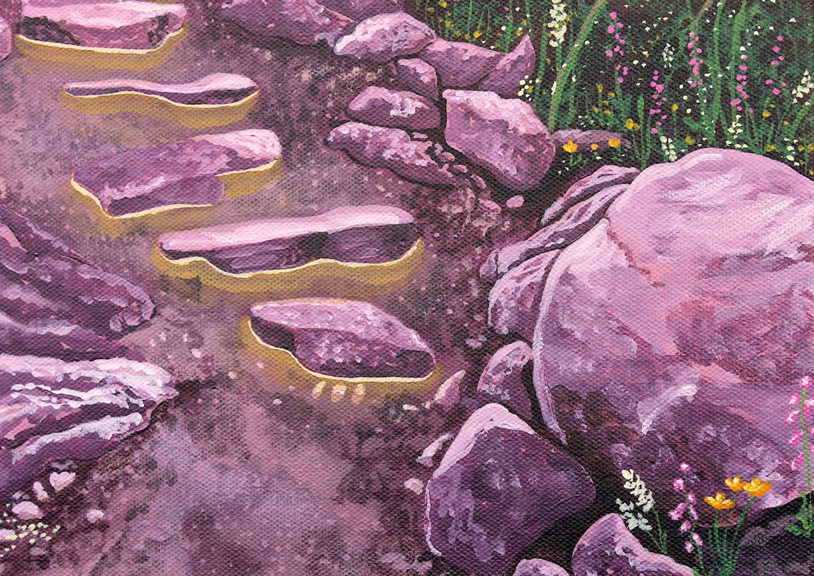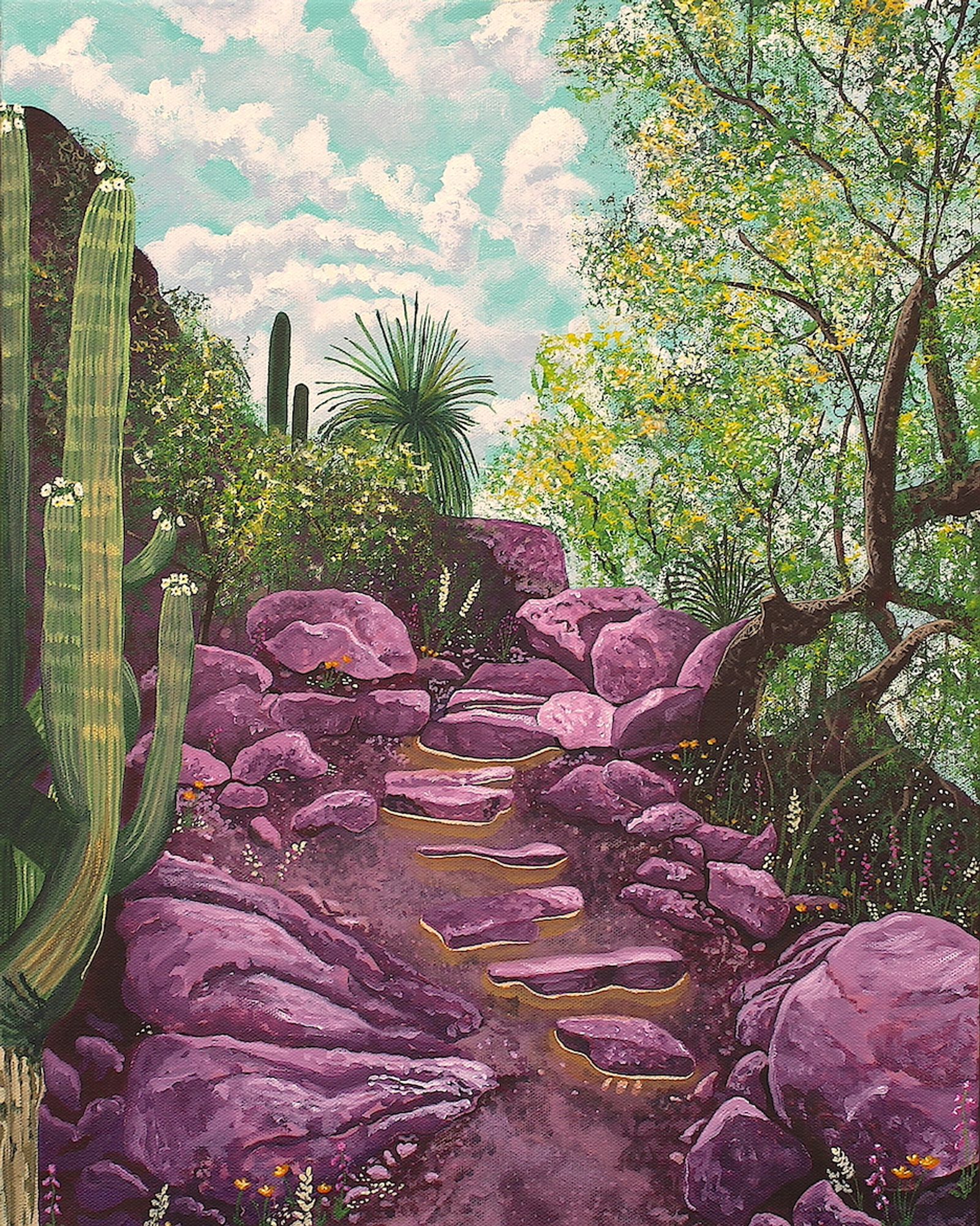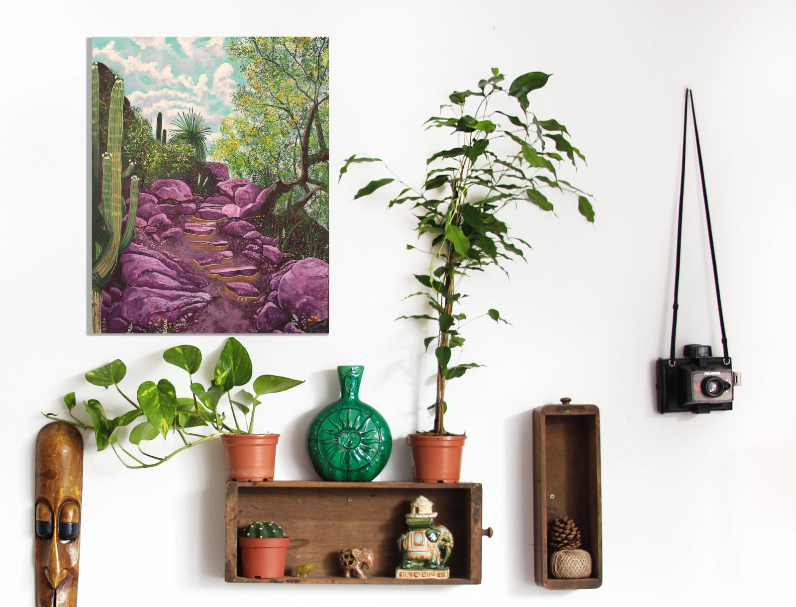 20x16" acrylic on 2" deep gallery wrapped canvas. Gloss varnished for protection and wired and ready to hang. All originals are signed and dated on the back of the canvas.