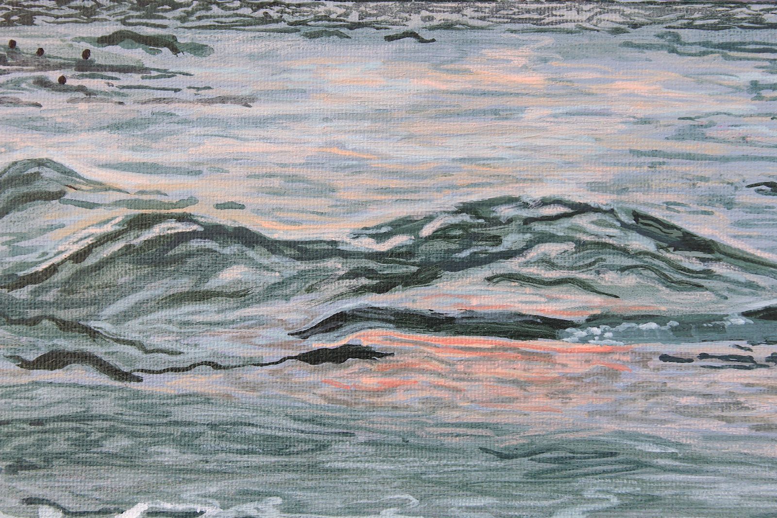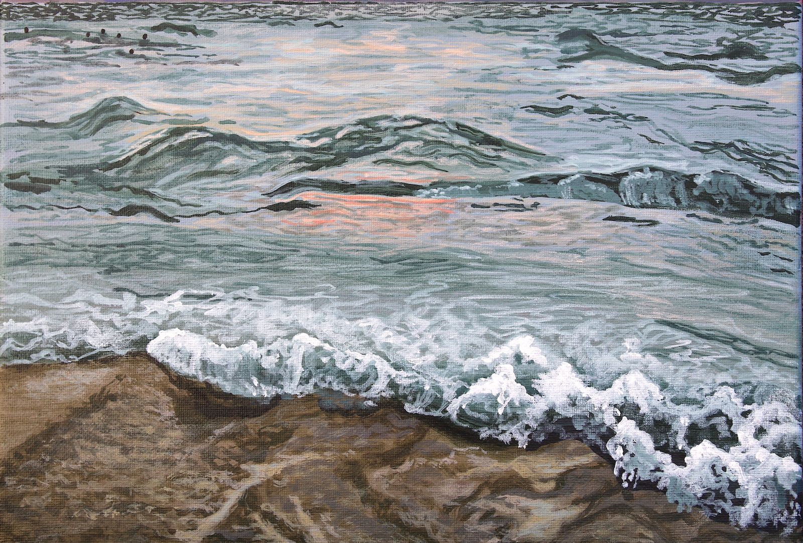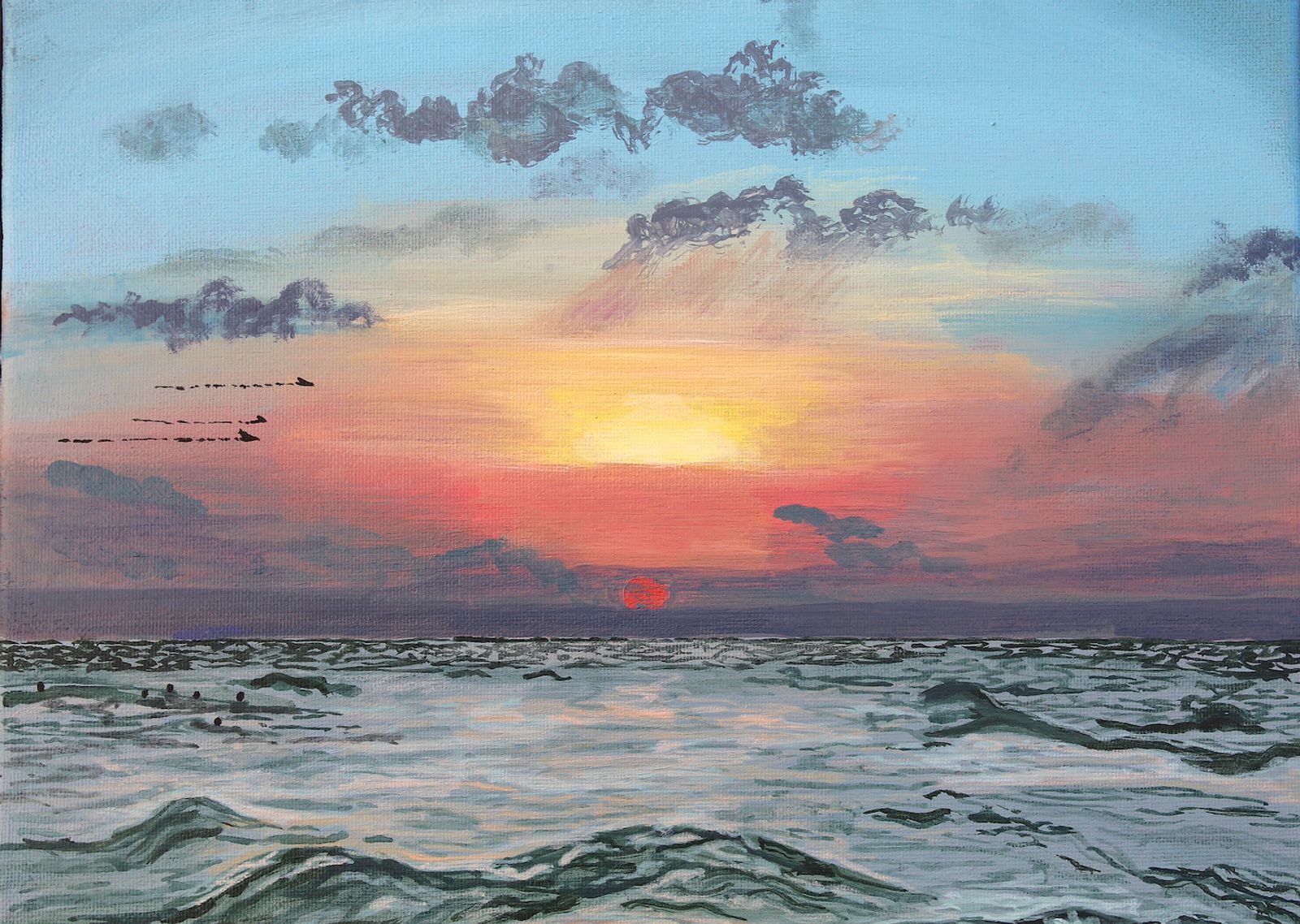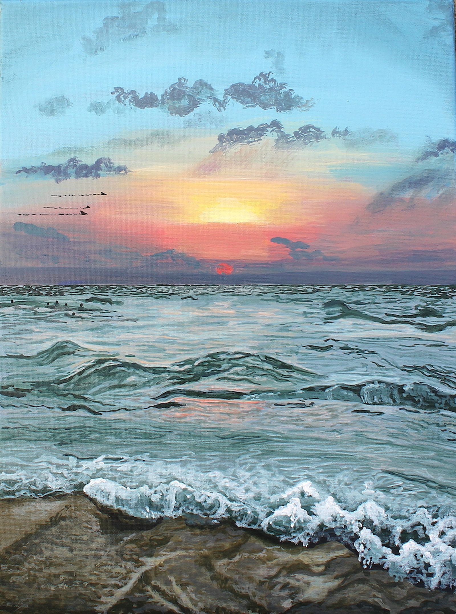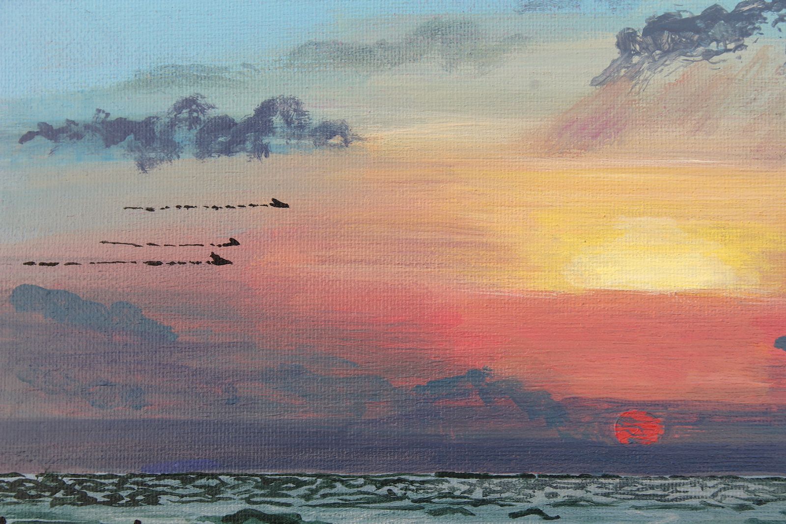 12x16" acrylic on half inch deep canvas. Gloss varnished for protection and wired and ready to hang. All originals are signed and dated on the back of the canvas.